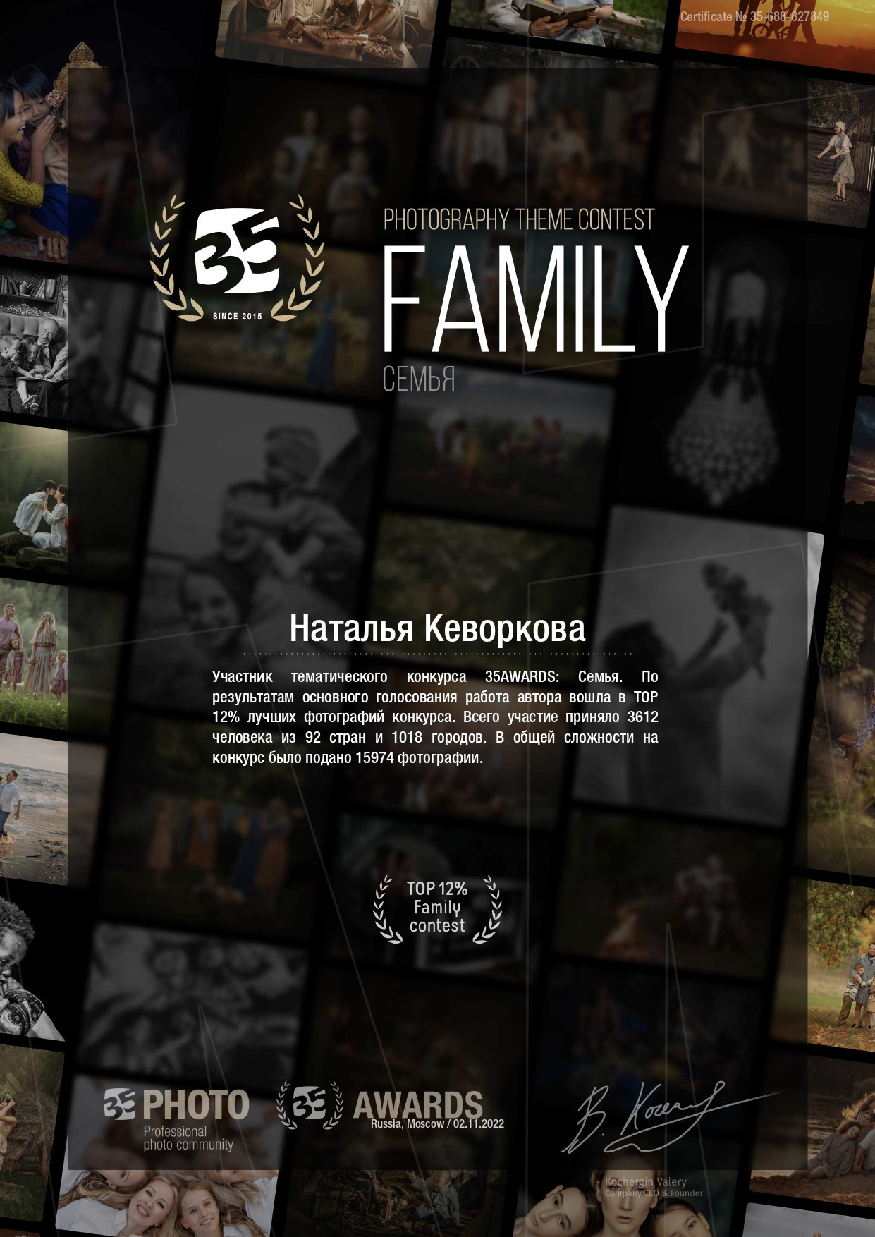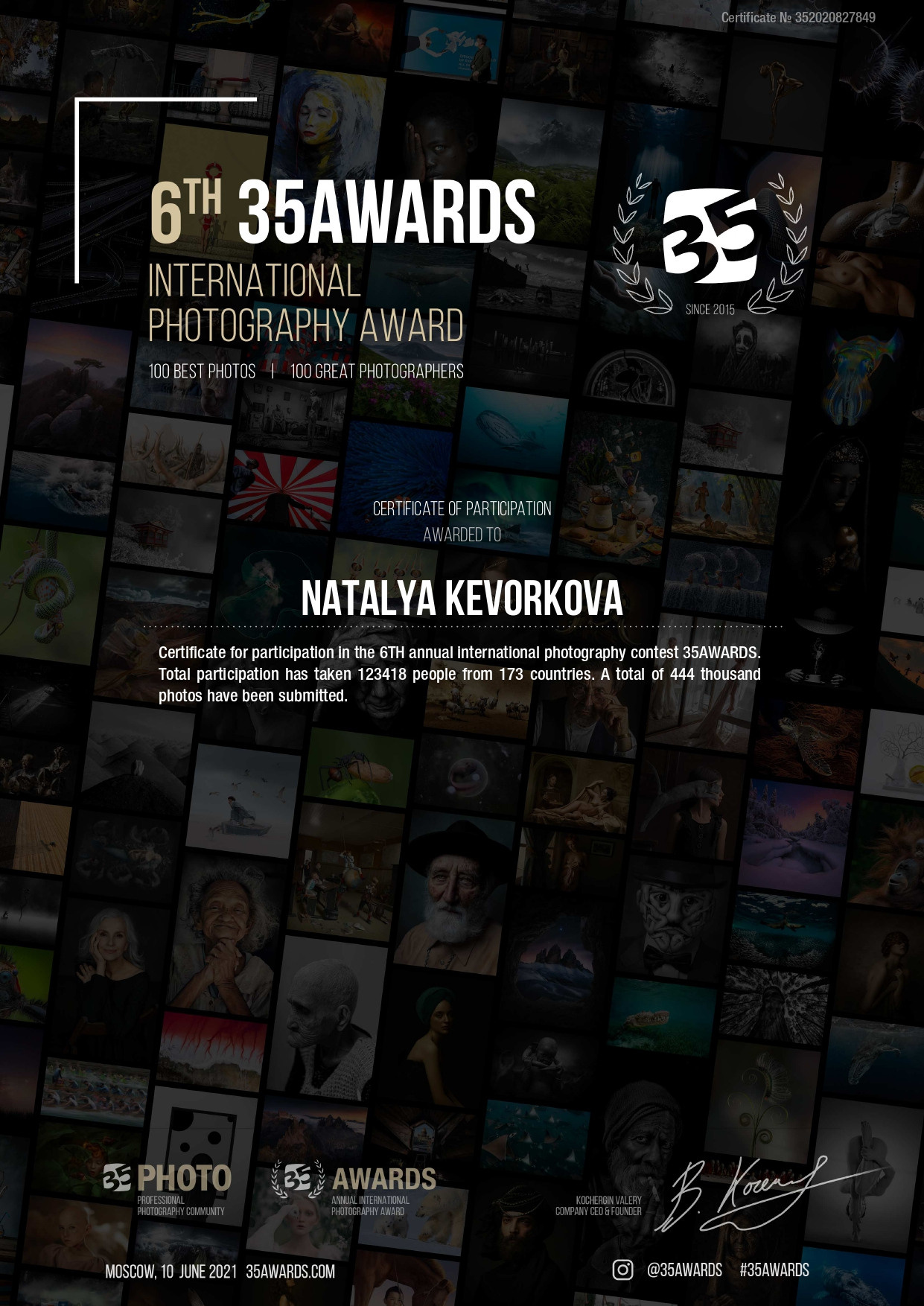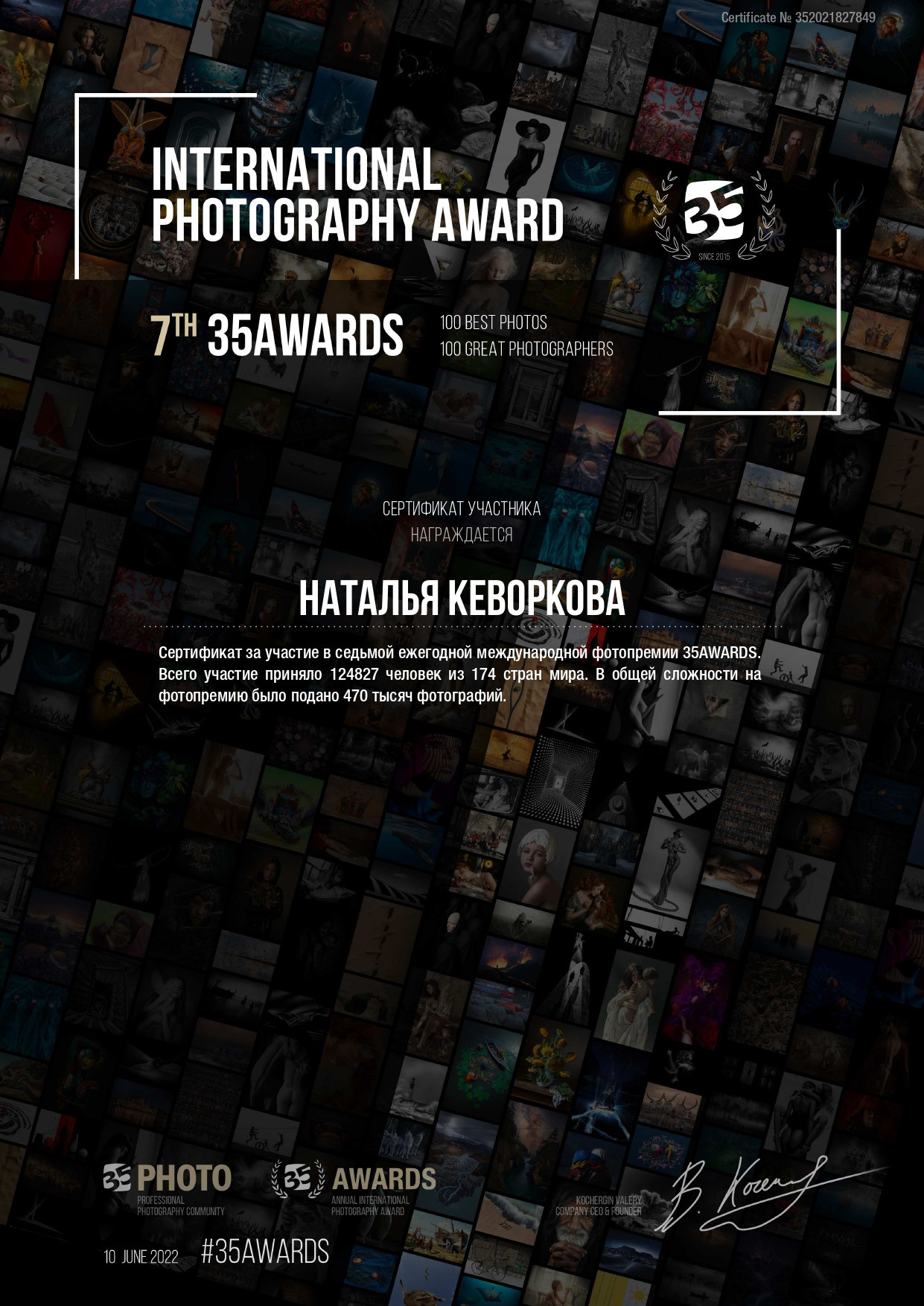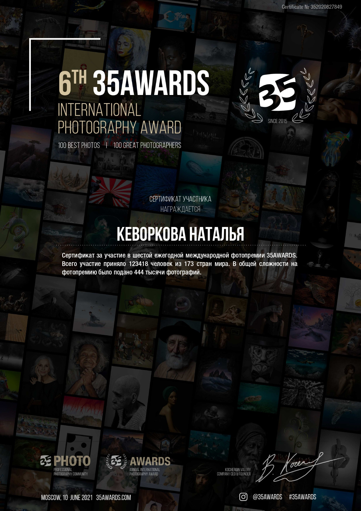 Дипломы, сертификаты, достижения. Контент-фотограф в Калининграде (Москве) Наталья Кеворкова